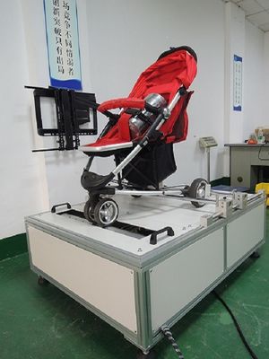 É testando o desempenho da roda do carrinho de criança na estrada prejudicial, após ter feito o teste de impacto da repetição, examina a roda para mudar a forma ou o dano. (Base na exigência EN-1888-2018/na exigência especificada cliente) o usuário pode pré-ajustar a quantidade da velocidade e do ciclo na relação do PLC.