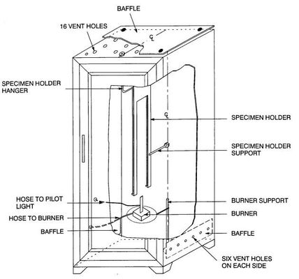 Este aparelho é utilizado para avaliar a resistência à chama de tecido, tecido multicamadas, conjuntos de tecido utilizados em vestidos e tenda de campismo.