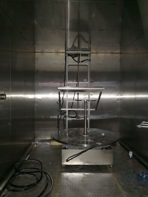 10. O estágio de amostra usa um motor de passo, e a velocidade de rotação e o ângulo padrão podem ser ajustados com precisão na tela sensível ao toque.O padrão IPX1 requer uma velocidade de 1r/min;Ele pode completar automaticamente os requisitos de teste de ângulo IPX2: quatro posições pingam chuva por 2,5 minutos, respectivamente.
