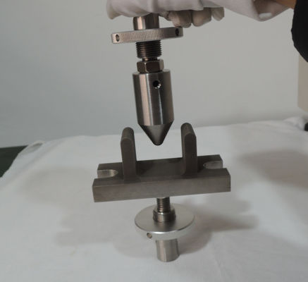 A ponta é centrada verticalmente em 15mm a 20mm na extremidade do bico, e uma pressão de 200±10N é aplicada a uma velocidade de 10±5mm/min para 1±0.5sec. Verifique se o bocal esteja puncionado.