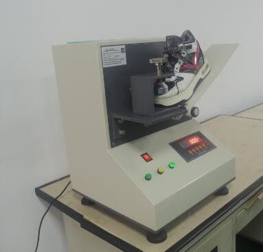 2. Instale a amostra (sapata ou sola da sapata), e o lugar a linha do ziguezague da amostra no eixo de gerencio para comprimir o tampão do dedo do pé;
