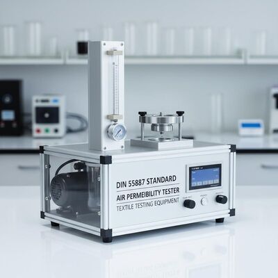 O verificador da permeabilidade do ar para a matéria têxtil consiste em um arranjo para guardar o espécime do teste entre duas caras lisas para expor uma área conhecida ao fluxo do ar através dele. Um sistema do vácuo para tirar o ar com exposto dos espécimes, do arranjo para medir o volume de ar que corre através do espécime do teste, e do arranjo do teste para medir a gota de pressão entre as duas caras do espécime do teste.
