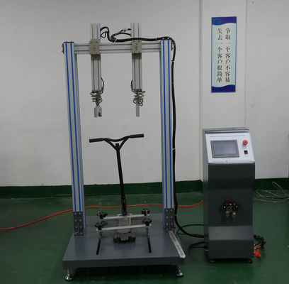Verificador de direção da força dos tubos do "trotinette" dos brinquedos para aplicar-se para testar a força dos tubos de direção do "trotinette" do brinquedo, incluindo a resistência às forças descendentes e a resistência às forças ascendentes.