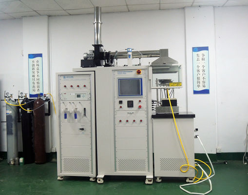 Este dispositivo é usado para avaliar os materiais expostos à radiação térmica (valor típico 25, 35 da radiação, 50KW/m2), inflamou-se por um dispositivo da ignição da centelha elétrica, e mede então a taxa de liberação do calor do material, do caudal do gás de conduto, e do coeficiente de C, tempo da ignição da amostra e a geração tempo extinguir, o consumo total do oxigênio, a geração total do fumo, a taxa maciça da perda, a liberação de calor total, o calor de combustão eficaz, a geração do dióxido de carbono e de carbono do monóxido.