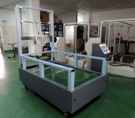 Esta máquina simula o estado de corrida de um carrinho de criança. Fixe a amostra com uma determinada carga no banco do teste, ajuste o número de testes exigidos, e ajuste a velocidade exigida para o teste. Após o teste, verifique se a estrutura e o desempenho da amostra estejam intactos.