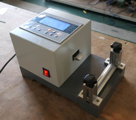 Esta máquina de teste é usada para testar a força de casca entre a sola e a parte superior da sapata. O princípio é apertar o último terminado da sapata na máquina de teste, e descasca fora o único e superior com uma faca de descascamento. A força do teste que descasca fora a colagem inicial é a força de descascamento, e a força de descascamento é calculada com base na largura da faca de descascamento.