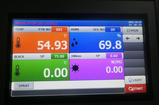 2. Tela sensível ao toque colorida, indica a condição da câmara em tempo real, pode pré-ajustar a irradiância, temperatura (BPT, BST, câmara), umidade e plotar a curva dinâmica delas.O operador simplesmente seleciona o módulo de teste necessário e os padrões de teste;Interface de usuário em inglês, o diagrama indica a condição da câmara, fácil de usar;