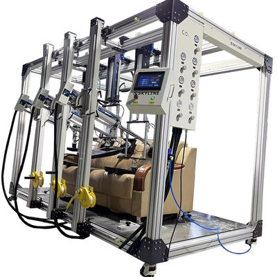 Este testador simula as condições normais de utilização para determinar a resistência do sofá sob uma carga repetível a longo prazo.O princípio é simular o uso funcional normal para determinar a resistência da estrutura de três sofás aplicando-se a assentos e encosto com cargas- utilizando um determinado formato e módulos de carga, com forma e frequência específicas, respectivamente, repetindo assentos de carga, encosto e encosto de braço, e estes três ensaios podem funcionar juntos ou independentemente,Além disso, a posição de ensaio é ajustável..