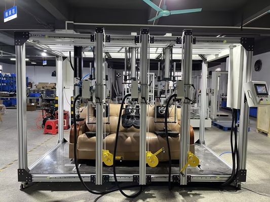 Este testador simula as condições normais de utilização para determinar a resistência do sofá sob uma carga repetível a longo prazo.O princípio é simular o uso funcional normal para determinar a resistência da estrutura de três sofás aplicando-se a assentos e encosto com cargas- utilizando um determinado formato e módulos de carga, com forma e frequência específicas, respectivamente, repetindo assentos de carga, encosto e encosto de braço, e estes três ensaios podem funcionar em conjunto ou independentemente,Além disso, a posição de ensaio é ajustável..