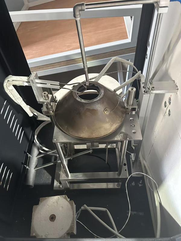 O sistema completo inclui cone de radiação, dispositivo de ignição, bocal, mecanismo de placa de pressão, estrutura de suporte, registrador de temperatura, sistema de gás e controle por computador.