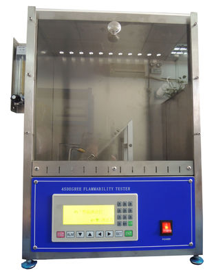 45 graus são usados para avaliar a conformidade de produtos do fogo-retardador com padrões de desempenho do fogo-retardador de acordo com o método da combustão, e medidas das características da combustão como após o fulgor e após a chama do espécime do teste instalada em um ângulo de 45 graus.