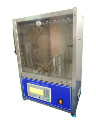 Para determinar as características ardentes das matérias têxteis sob circunstâncias controladas. Armário de teste de aço inoxidável com o painel de vidro da observação fornecido com o sincronismo automático da propagação da chama em 0,1 segundos incrementos da ignição. Dispositivo de escovadela que inclui a escova de nylon de reposição.