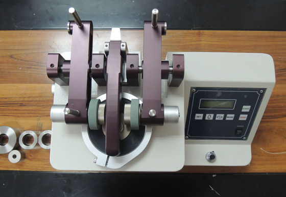 Este verificador aplicou-se para fazer o teste de desgaste-resistente na borracha da pele, do couro, do pano, da pintura, do papel, do revestimento, da madeira compensada, a de vidro e a natural. O método está usando a faca padrão que corta o espécime, e então usando os modelos regulados da roda de moedura com o peso de carga a ser abrased, o espécime a ser depois que a rotação para alcançado um determinado número, observa a condição do espécime ou compara o peso com o material precedente, para a escolha da roda de moedura modela: H18, H22, CS17, S32, S33.